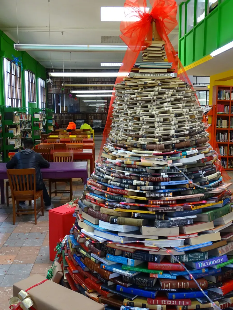 Foto: Weihnachtsbaum aus Büchern in Saltillo, Mexiko.