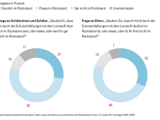 Auch die Lehrkräfte wurden befragt. 16,5 Prozent von ihnen gaben an, dass es bei "fast allen" Schülerinnen und Schülern durch die besondere Situation im Schuljahr gravierende Lernrückstände gebe, weitere rund 30 Prozent sahen dieses Problem "bei mehr als der Hälfte". Auch hier fällt die Bilanz bei Lehrkräften in ärmeren Regionen am negativsten aus. Dort sahen 24 Prozent schwerwiegende Lücken bei fast allen ihren Schülern, in wohlhabenderen Regionen sagten das nur 13 Prozent.