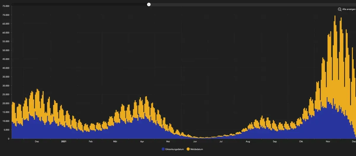 Der zweite Corona-Dezember: Wie geht er weiter? Screenshot vom Corona-Dashboard des RKI.