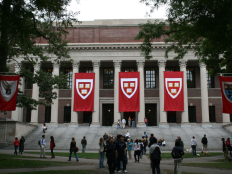 • Flaggen am Eingangsportal des US amerikanischen Harvard University.
