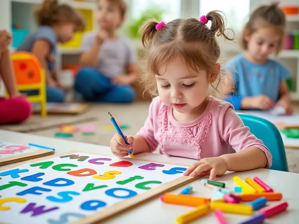 Erste Begegnungen mit dem Alphabet im Kindergarten, KI-generiert.